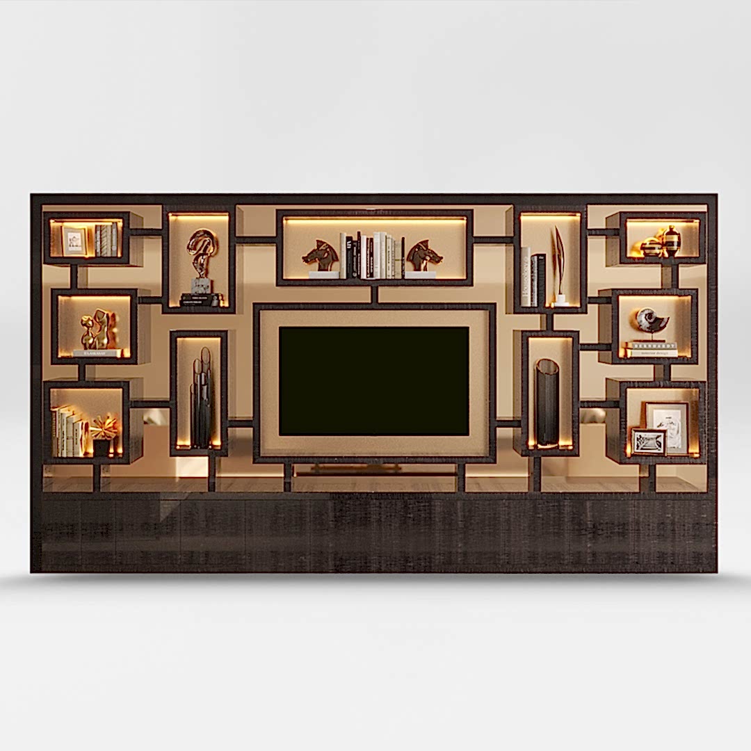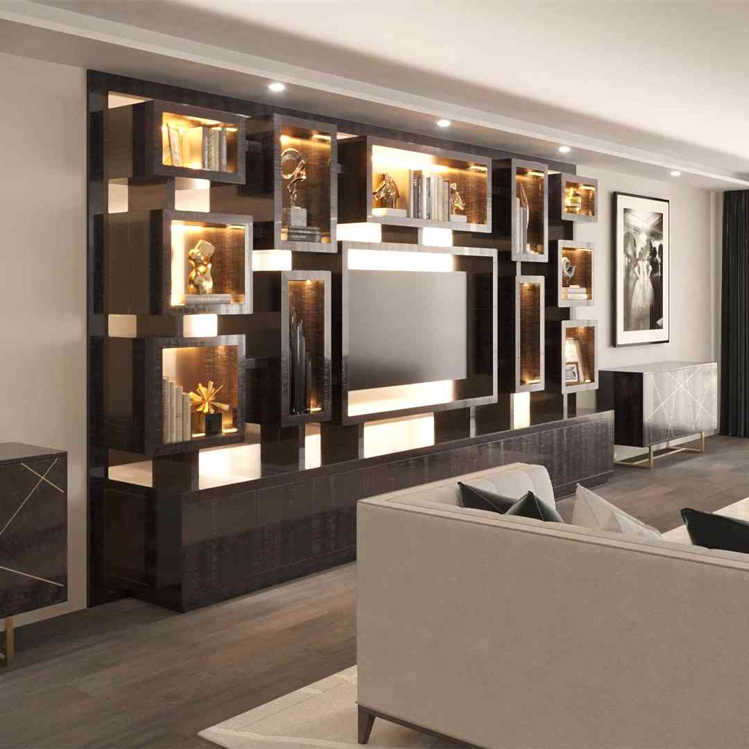 The Ebury is a sleek and sophisticated media unit that embodies sophisticated living, decorative storage shelves are backlit with warm LED lights to exhibit your collection of art and treasured objects. The unit has an integrated space for a large television and concealed cabling, while low-level storage cabinets with a single shelf facilitate an abundance of storage.