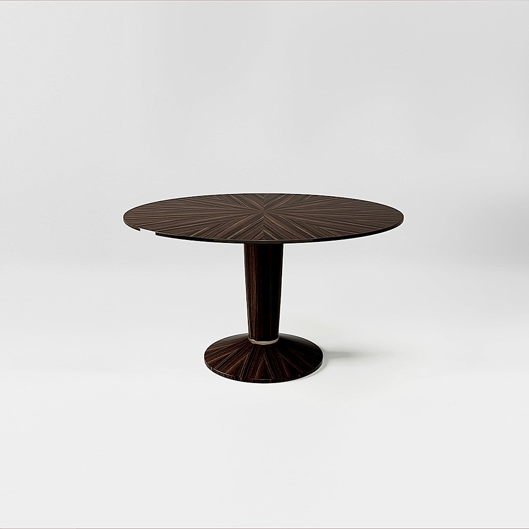 Made by the skilled hands of British craftsmen, the table is available in any of DAVIDSON’s luxurious finishes. The stunning radial pattern draws the eye, promising an outstanding level of craftsmanship.