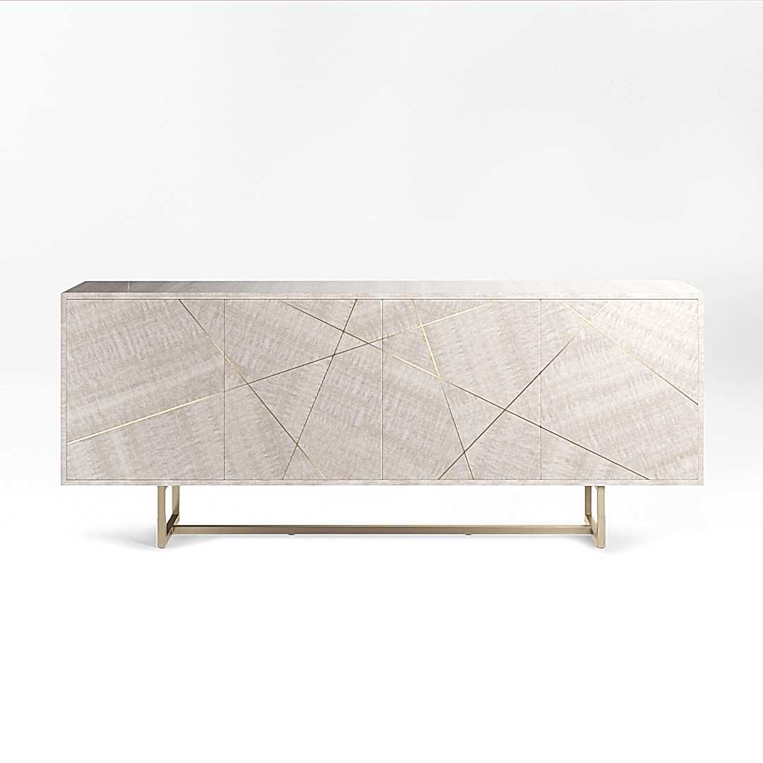 The glamorous sister product to the Oblique cabinet, the modern four door Abstract sideboard offers a lighter feel with raised legs and a stylish diagonal design across its wood doors.