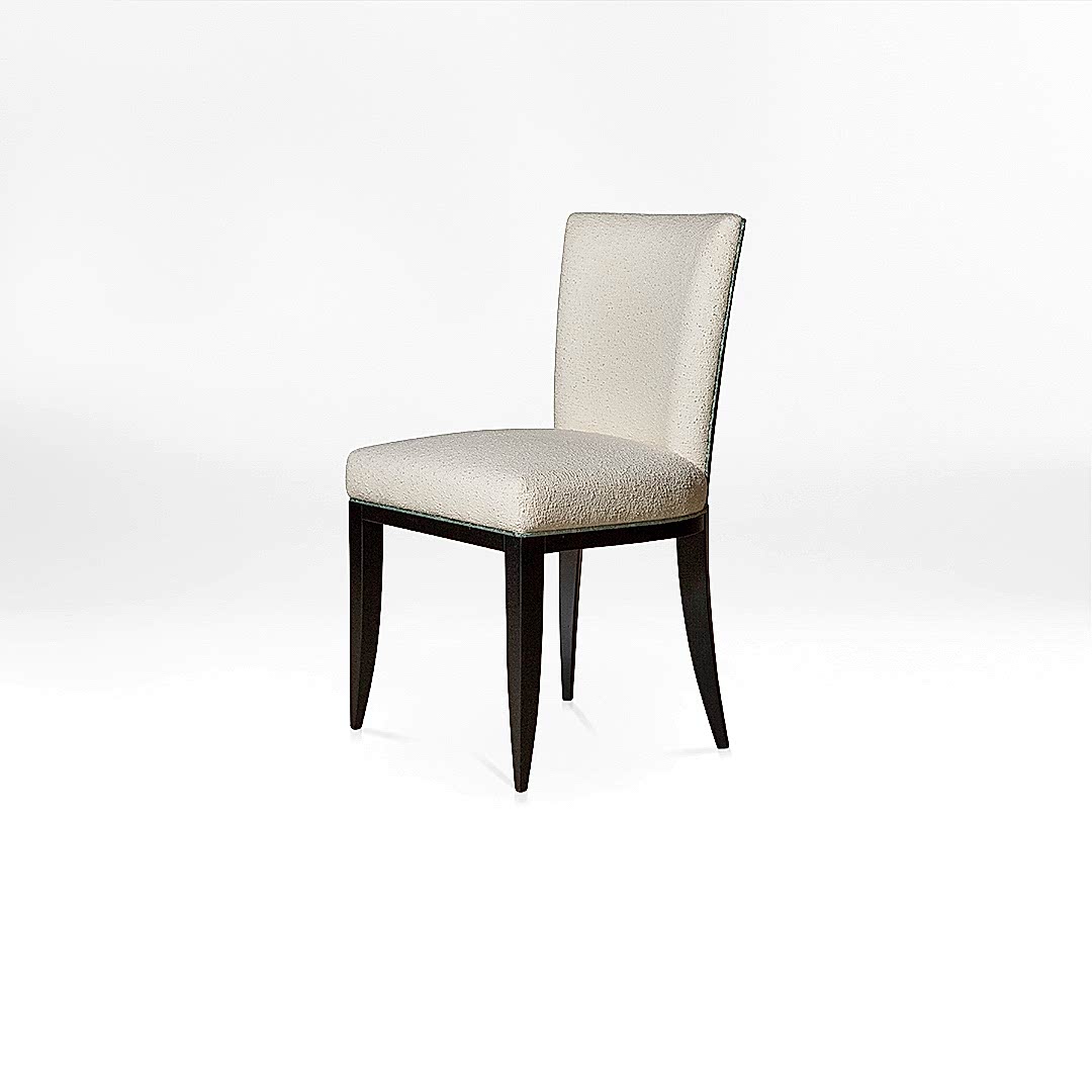 The Rivington Chair is a contemporary addition to any dining room or living space. Its feminine hues, subtly curved back, and legs finished in a tinted beech, which taper gently to create an unmistakably modern silhouette, making it one of the more elegant chairs in the collection.