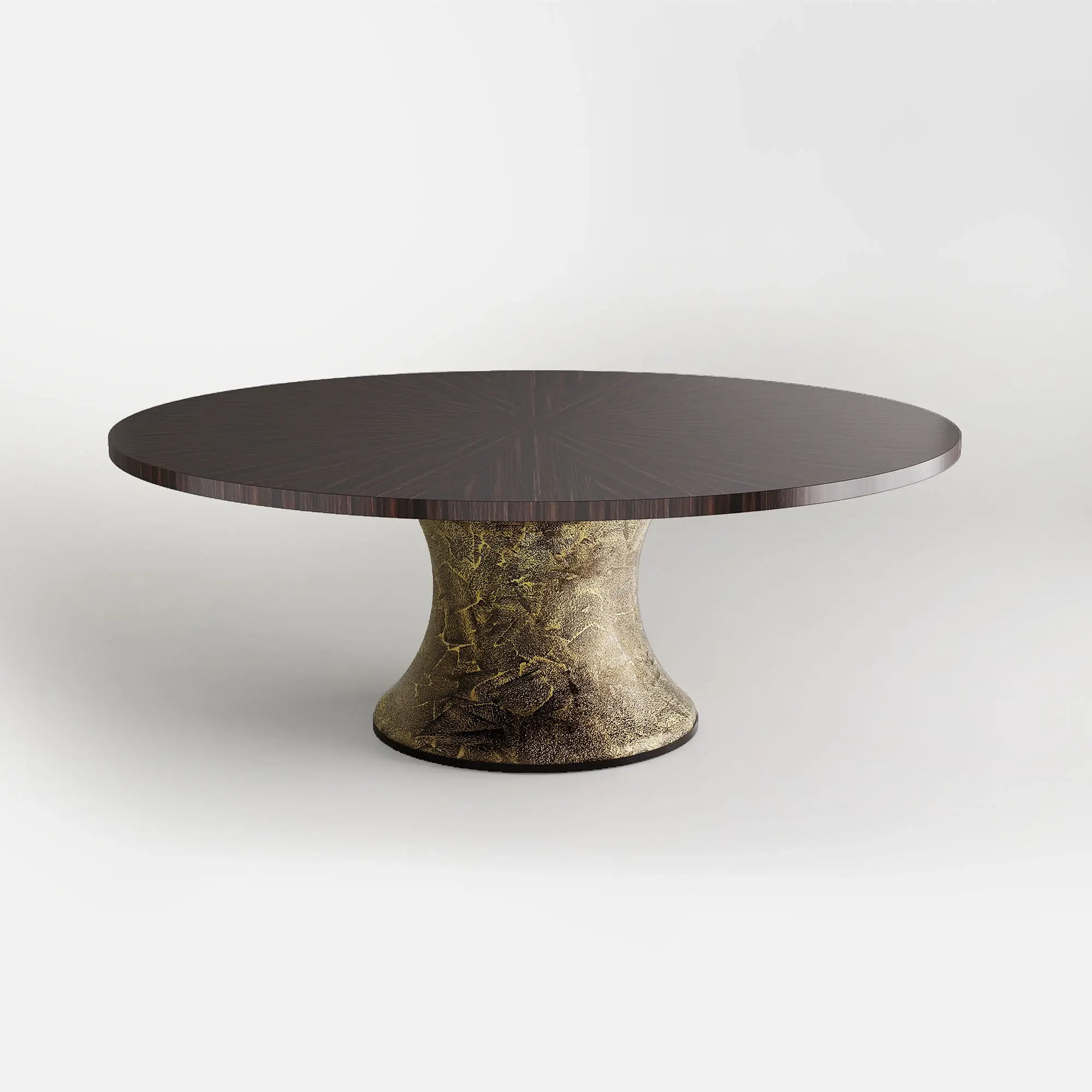 Discover the Rosebery Dining Table, reimagined and relaunched for 2024 as the pinnacle of dining elegance. This exquisite piece features a top crafted from satin Macassar Ebony in a striking radial pattern, meticulously designed with 20 hand-assembled veneer segments for unparalleled artistry.
