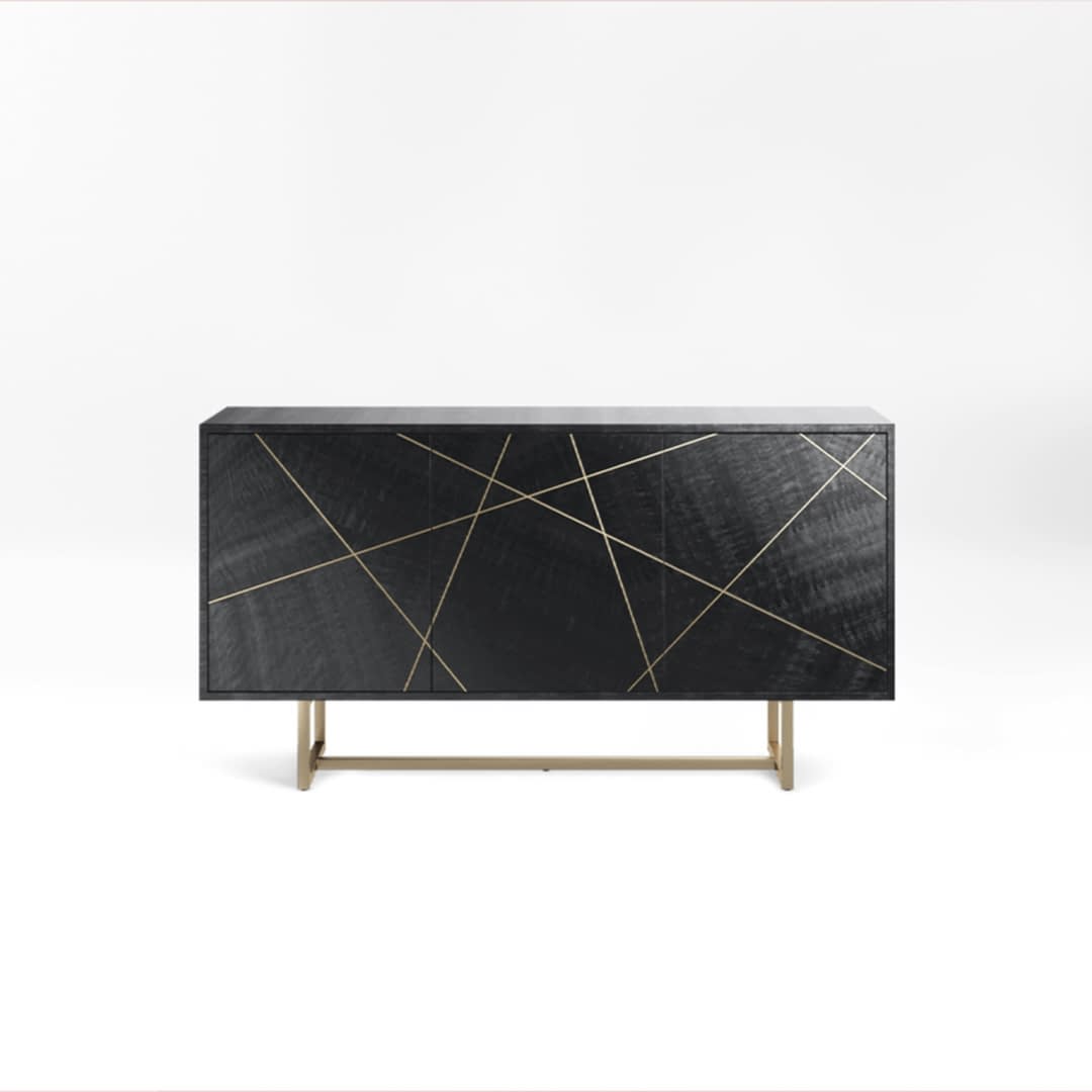 The glamorous sister product to the Oblique cabinet, the modern Three Door Abstract offers a lighter feel with raised legs and a stylish diagonal design across its wood doors.
