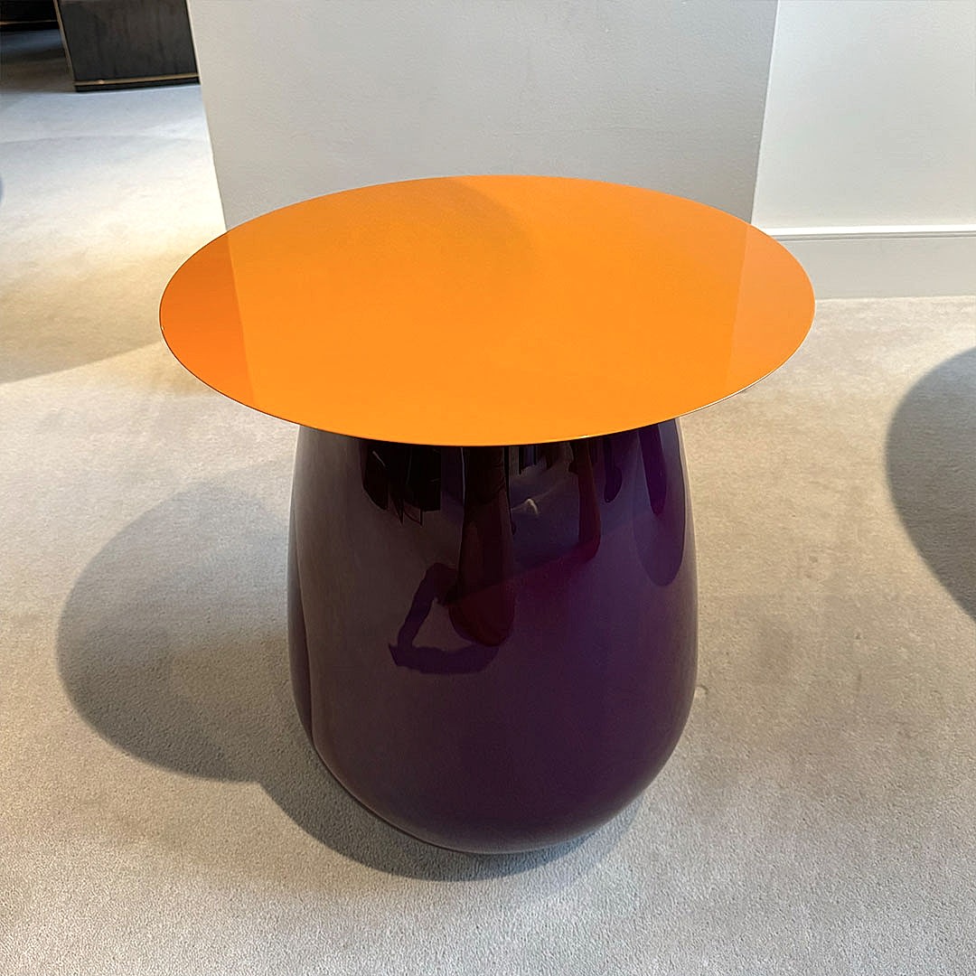 This side table’s clean lines and graceful design allow it to complement both contemporary and traditional interiors seamlessly. Available here in High Gloss Vail and Vienna, a perfect pairing of Hermes Orange and a cool Purple.